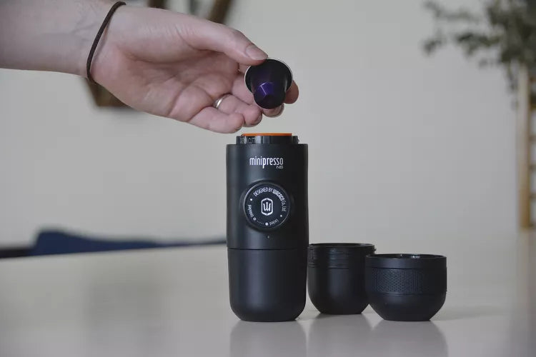 Our portable espresso companion. Compact, efficient, and easy-to-use, it transforms coffee moments anywhere. Experience rich, bold flavors on the move with this pocket-sized powerhouse. Elevate your coffee ritual with Minipresso, ensuring a perfect brew wherever you wander.